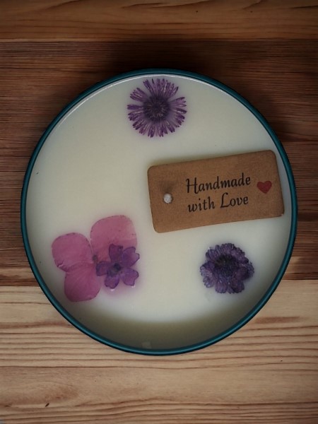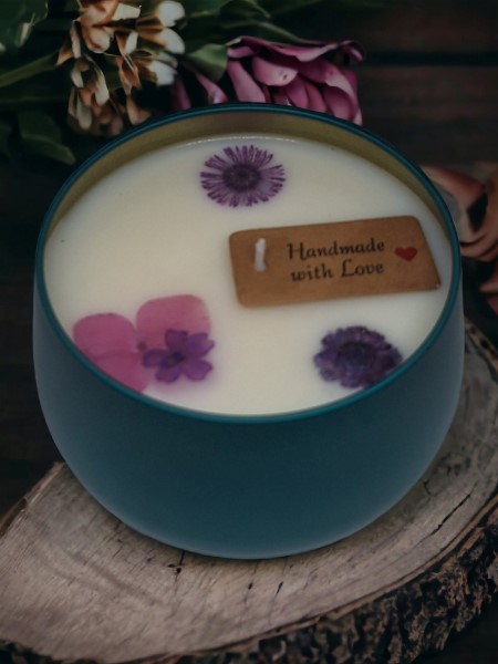 Χειροποίητο αρωματικό κερί από 100% φυτικό κερί σόγιας σε μεταλλικό βαζάκι με καπάκι 200γρ.